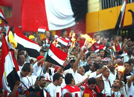 Plus de 30.000 spectateurs s'entassent dans le stade divisé en deux sections, l'une pour les fans algériens, l'autre pour les supporteurs égyptiens
